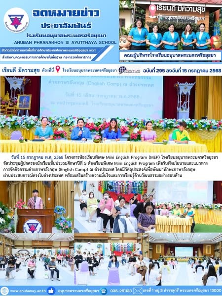 ประชุมผู้ปกครองนักเรียนชั้นประถมศึกษาปีที่ 5 ห้องเรียนพิเศษ Mini English Program เพื่อรับฟังนโยบายและแนวทาง การจัดกิจกรรมค่ายภาษาอังกฤษ (English Camp) ณ ต่างประเทศ