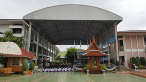 ต่อมากรมสามัญศึกษาได้อนุมัติเงินงบประมาณค่าก่อสร้างมาให้เป็นจำนวนเงิน 229,200 บาท ซึ่งเมื่อ ประมูลราคาแล้ว ยังขาดเงินอยู่อีก 5,400 บาท ท่านศึกษาธิการจังหวัด ขุนศึกษากรรม์พิเศษ ได้ขอความร่วมมือไปยัง นายแพทย์ทรวง เดชกำแพง ตลอดจนสมาชิก จุฬาลงกรณ์มหาวิทยาลัยได้ช่วยเหลือสมทบทุน 5,000 บาท จึงจัดสร้างตามแบบแปลนของกรมสามัญศึกษา ตัวโรงเรียนเป็นอาคารไม้ ชั้นเดียว กว้าง 11 เมตร ยาว 52 เมตร ตั้งอยู่ที่ตำบลท่าวาสุกรี อำเภอกรุงเก่า จังหวัดพระนครศรีอยุธยา โดยได้ทำการย้ายจาก โรงเรียน จอมสุรางค์อุปถัมภ์ เมื่อวันที่ 5 มกราคม พ.ศ. 2497 โดยมี นางสาวบุญช่วย ขันธมุติ เป็นผู้รักษาการในตำแหน่งครูใหญ่ นางสาวมารยาต บำบัดนรภัย นางสาวสนุ่น คงพันธ์ เป็นผู้ ดำเนินการสอน และเริ่มทำการเปิดป้ายนามโรงเรียน เมื่อวันที่ 11 มกราคม พ.ศ. 2497 โดยมีท่านปลัดกระทรวงศึกษาธิการ ( หม่อมหลวงปิ่น มาลากุล ) ได้กรุณามาเป็นประธานในพิธี ในขณะนั้นมีนักเรียนทั้งสิ้น 43 คน