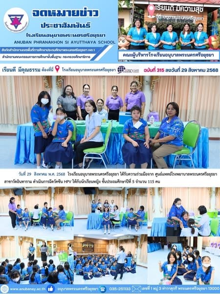 ฉีดวัคซีน HPV ให้กับนักเรียนหญิง ชั้นประถมศึกษาปีที่ 5